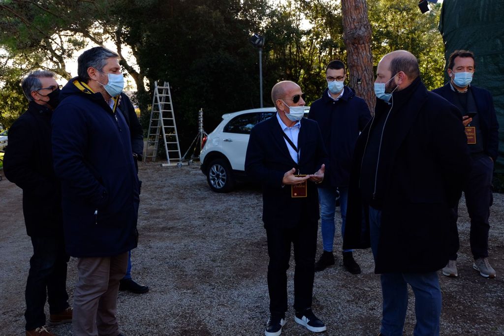 Il presidente Minerva in visita al set