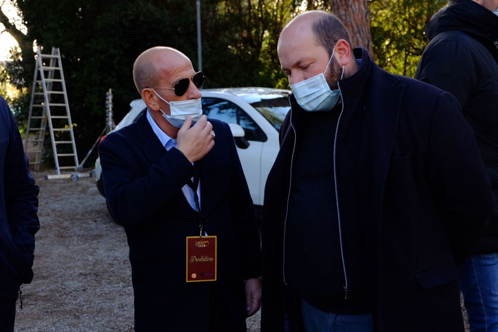 Il produttore Pier Paolo Piastra e il produttore esecutivo Giangi Foschini hanno accompagnato il presidente Stefano Minerva e il suo staff per una visita sul set dove tra un ciak e l’altro hanno potuto salutare il regista Alberto Ferrari e la sua troupe.