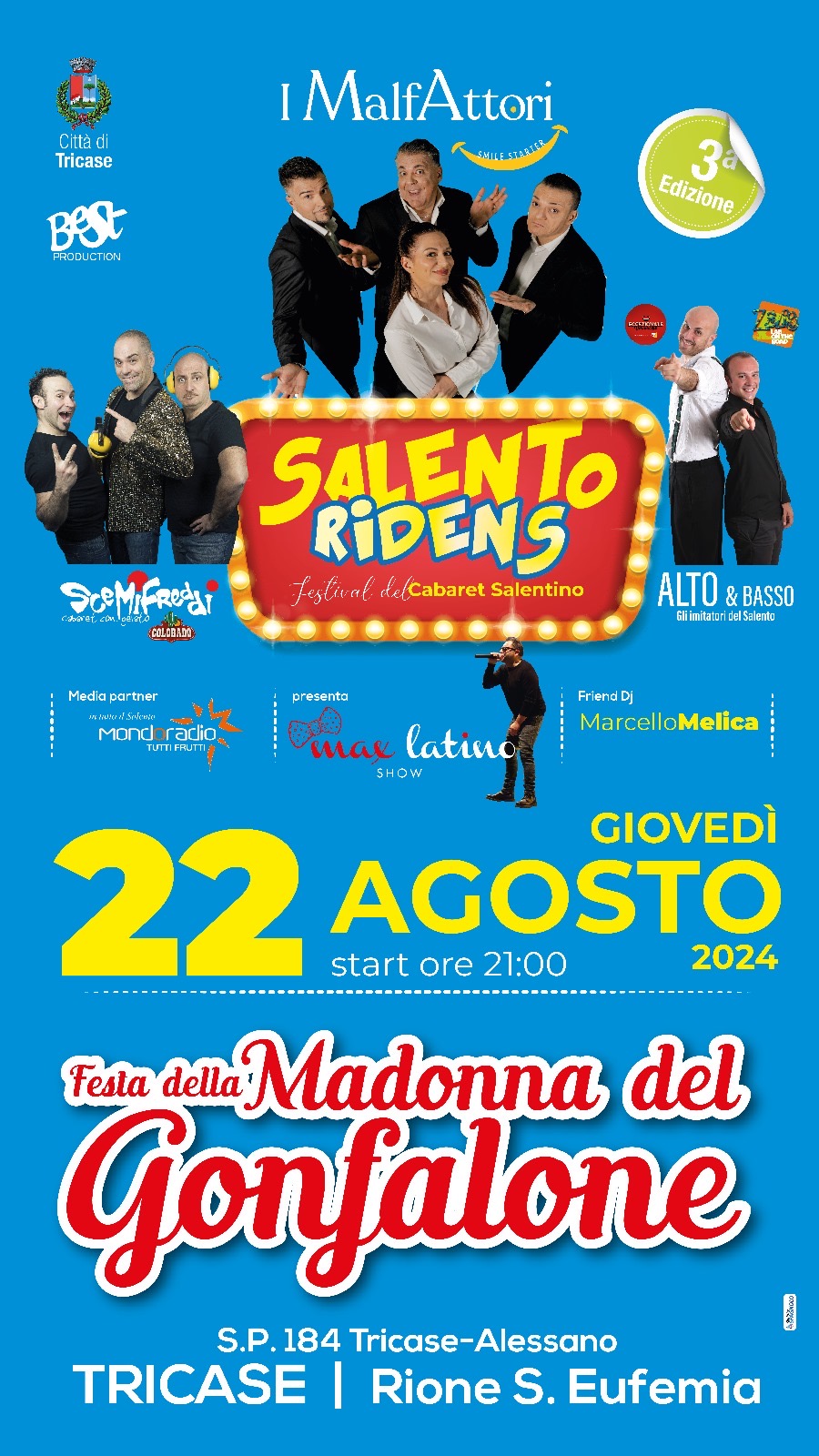 Giovedì 22 agosto, sempre dalle 21, l’evento forse più atteso: Salento Ridens, il festival della risata con I MalfAttori, gli Scemifreddi e Alto&Basso.