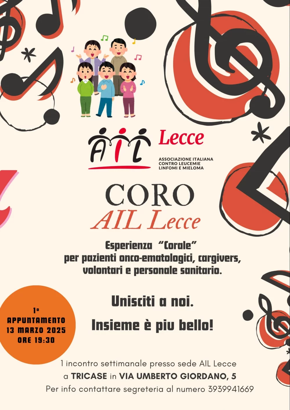 Il primo appuntamento settimanale si svolgerà presso la sede AIL LECCE di Tricase in via Umberto Giordano, 5.
