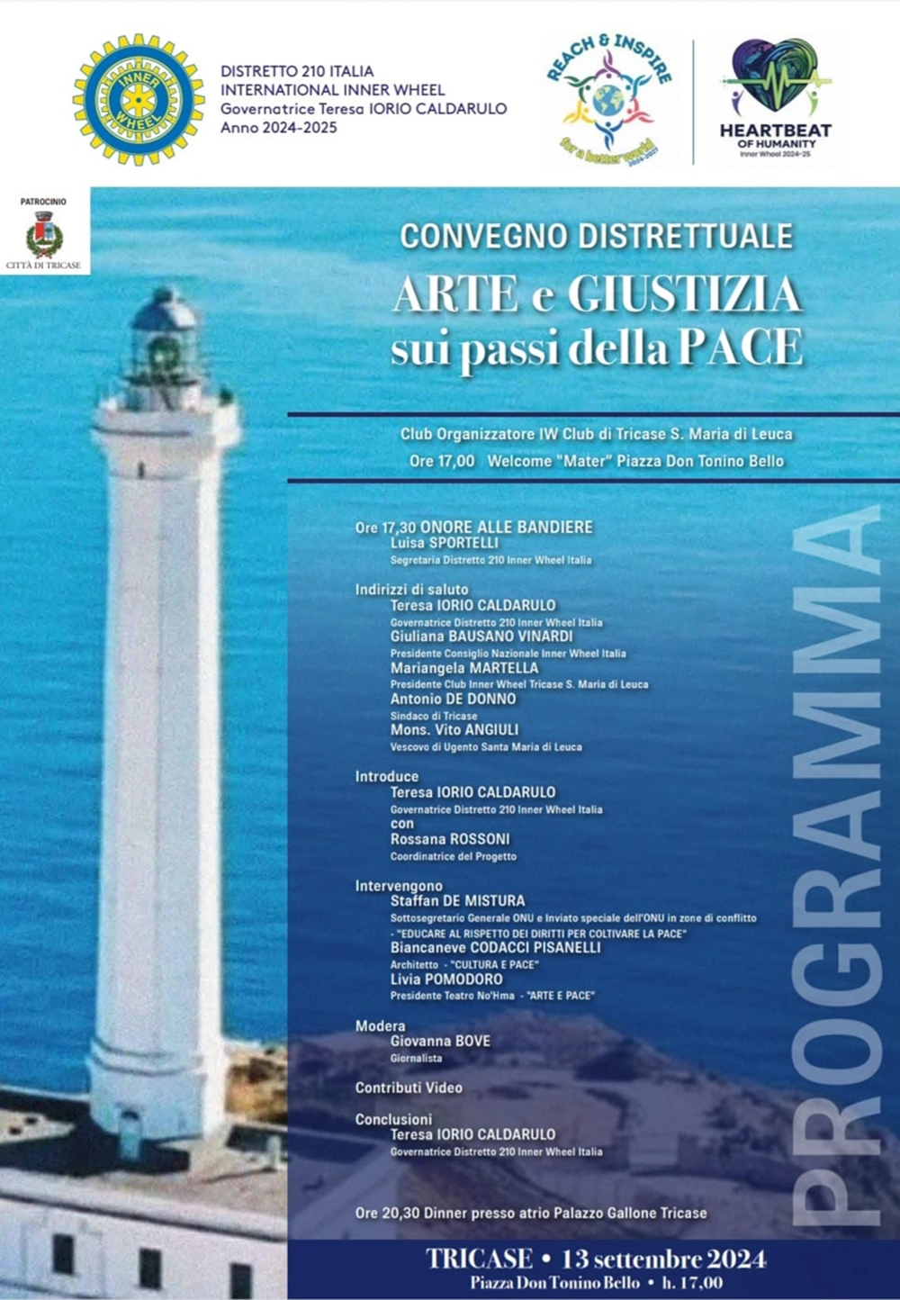Il Distretto 210 Inner Wheel Italia con la governatrice Teresa Iorio Caldarulo presenterà il convegno distrettuale dal titolo “Arte e Giustizia sui passi della Pace”.