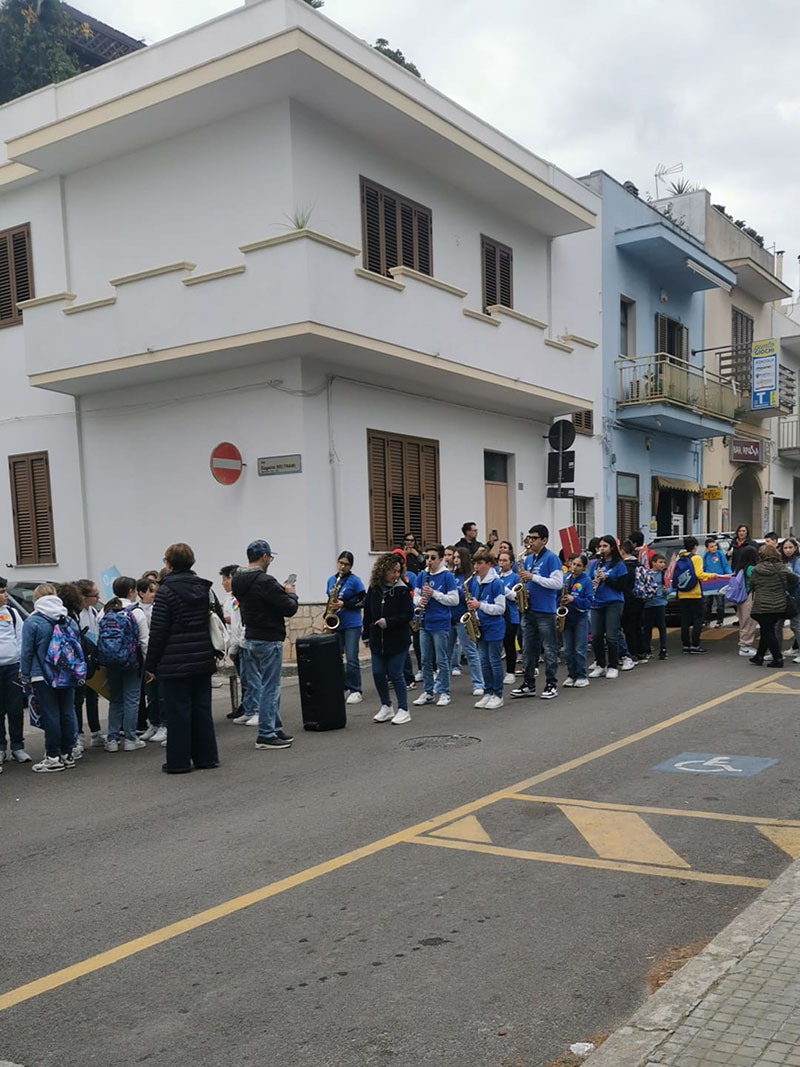 Per la Giornata Internazionale per i diritti dell’infanzia e dell’adolescenza gli alunni dell’Istituto comprensivo in marcia accompagnati dal Gruppo degli sbandieratori dell’Istituto e dalla Street Band dell’Orchestra Apulia
