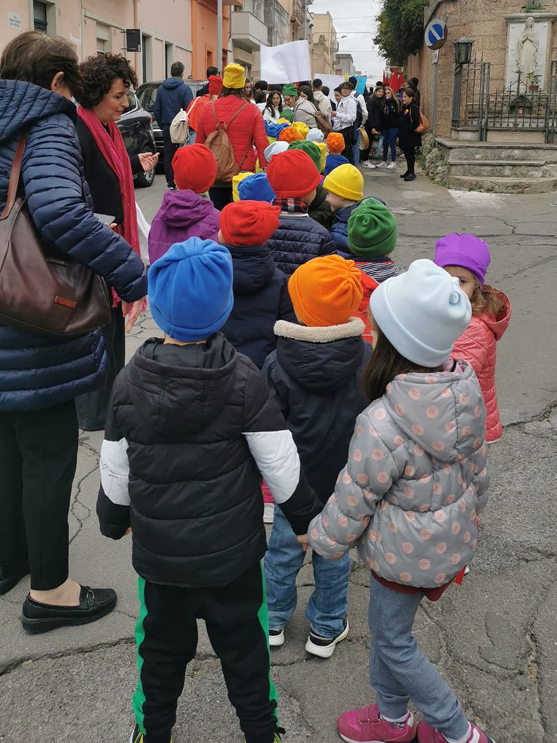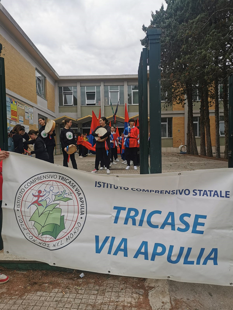 Alla Marcia dei Diritti partecipano gli alunni di cinque anni dell’infanzia, le classi della Scuola Primaria e le classi della Scuola Secondaria di Primo Grado accompagnati dal Gruppo degli sbandieratori dell’Istituto e dalla Street Band dell’Orchestra Apulia.
