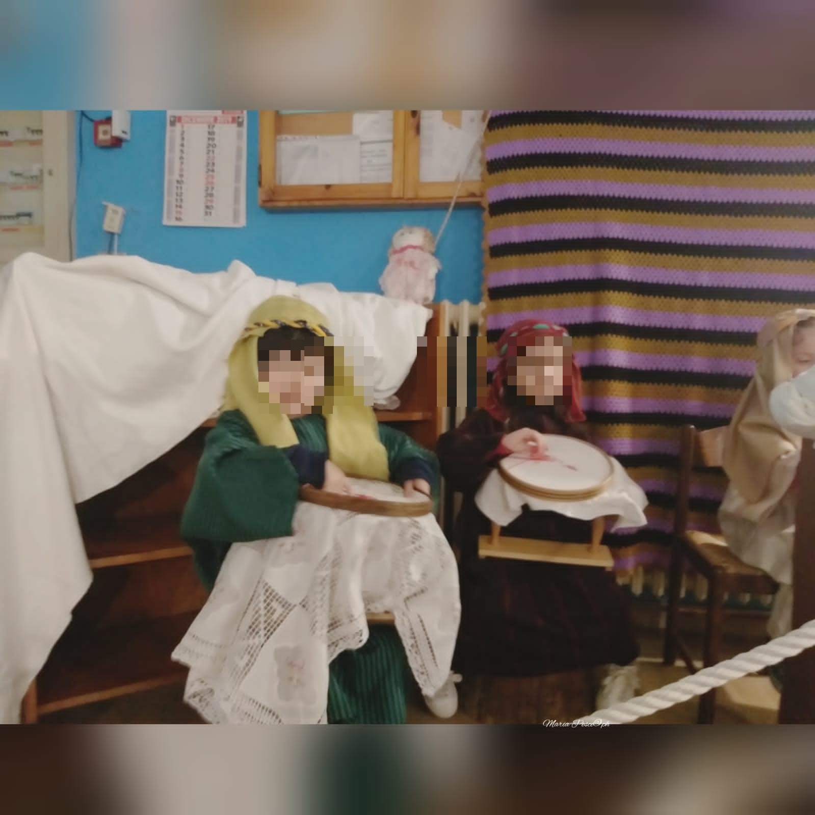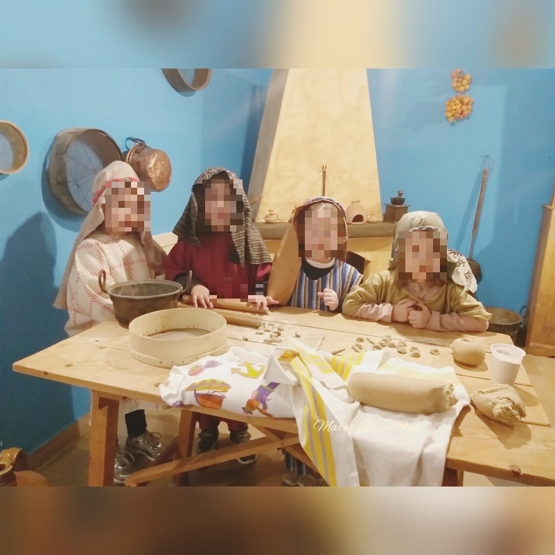 Così i bimbi e le bimbe della scuola dell’infanzia per una sera sono diventati pescatori, pastori, soldati romani, pastori, pastai, cestai e ricamatrici.