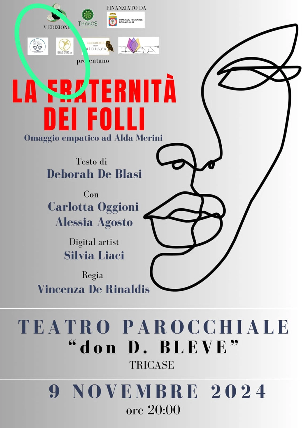 L’evento è inserito all’interno della rassegna musico-teatrale “Borgo in scena”, giunta alla sua quinta edizione e curata da Accademia Thymòs, sotto la direzione artistica di Vincenza De Rinaldis, in collaborazione con Accademia della Minerva, Polo Biblio museale di Lecce, Témenos Recinti Teatrali e Officine Arca APS, con il contributo finanziario del Consiglio Regionale della Puglia.