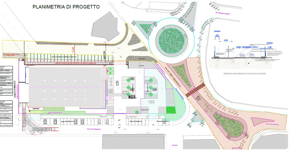 «Tra l’area all’interno e quelle all’esterno il problema non dovrebbe porsi. La zona va vista nella sua interezza ed immaginata dopo i diversi lavori in corso o in via di esecuzione. Sono già iniziati quelli della strada parallela a via Pirandello e quelli del tratto che dovrà realizzare Madi Immobiliare (titolare dei lavori) fino alla scuola di Via Apulia, e dell’ultimo tratto, a carico di Eurospin. Si realizzerà anche una rotatoria alla fine di via Pirandello, di fronte alla Farmacia Petrelli».