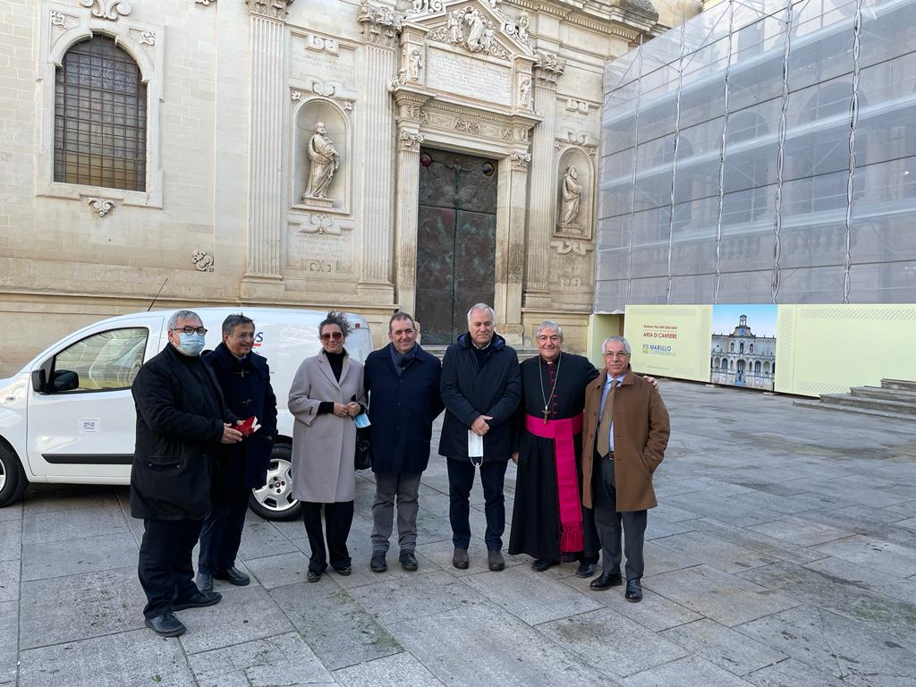 «Voi non saprete mai quanto amore questo automezzo farà entrare nelle case delle famiglie bisognose», ha dichiarato l’arcivescovo di Lecce Michele Seccia, «è un gesto merita la benedizione, non del vescovo, ma la benedizione di Dio. Perché lo avete fatto a lui».