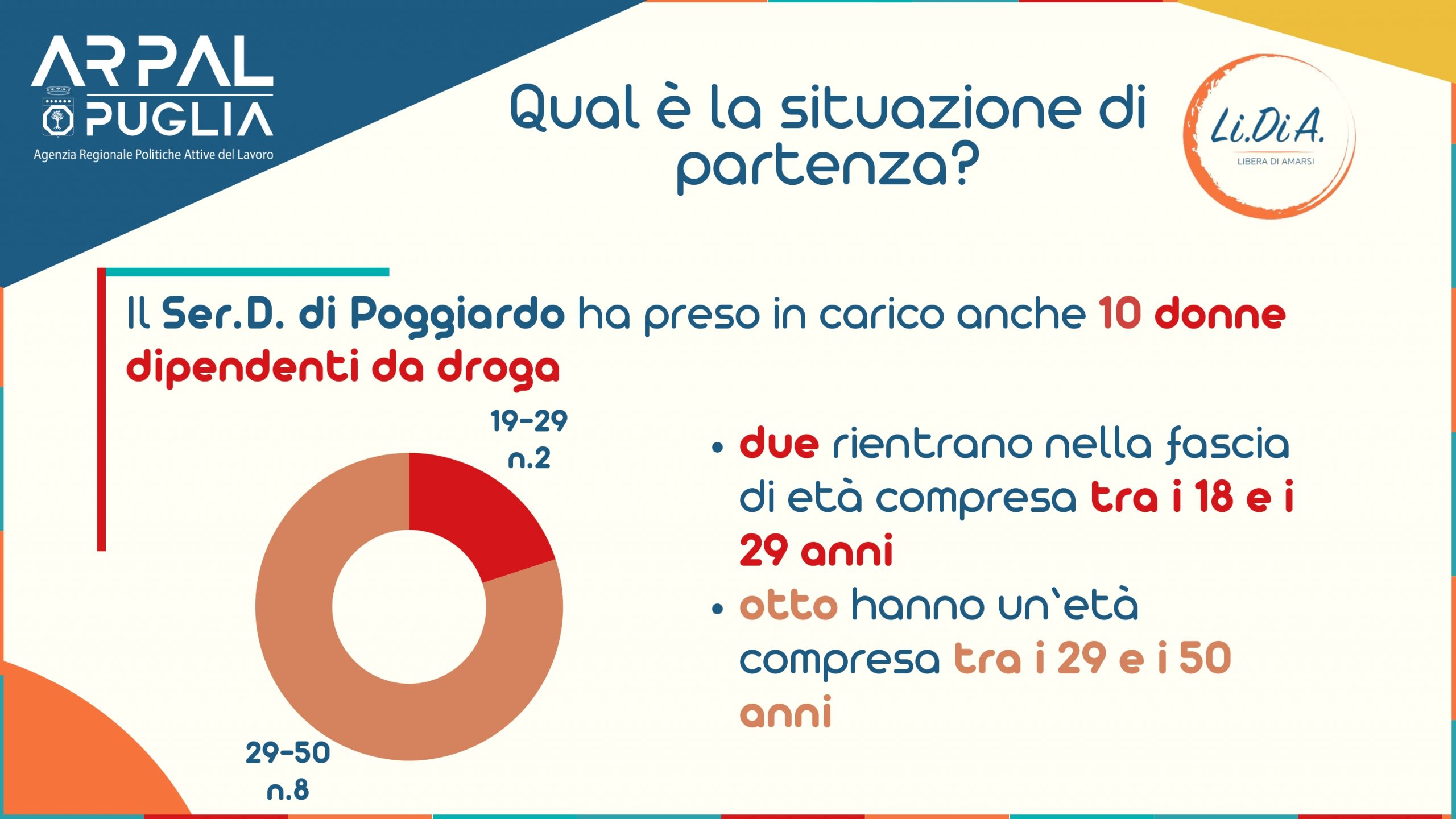 Poggiardo ha preso in carico anche dieci donne dipendenti da droga, di cui due hanno tra i 18 e i 29 anni e otto hanno un’età compresa tra 29 e 50 anni.