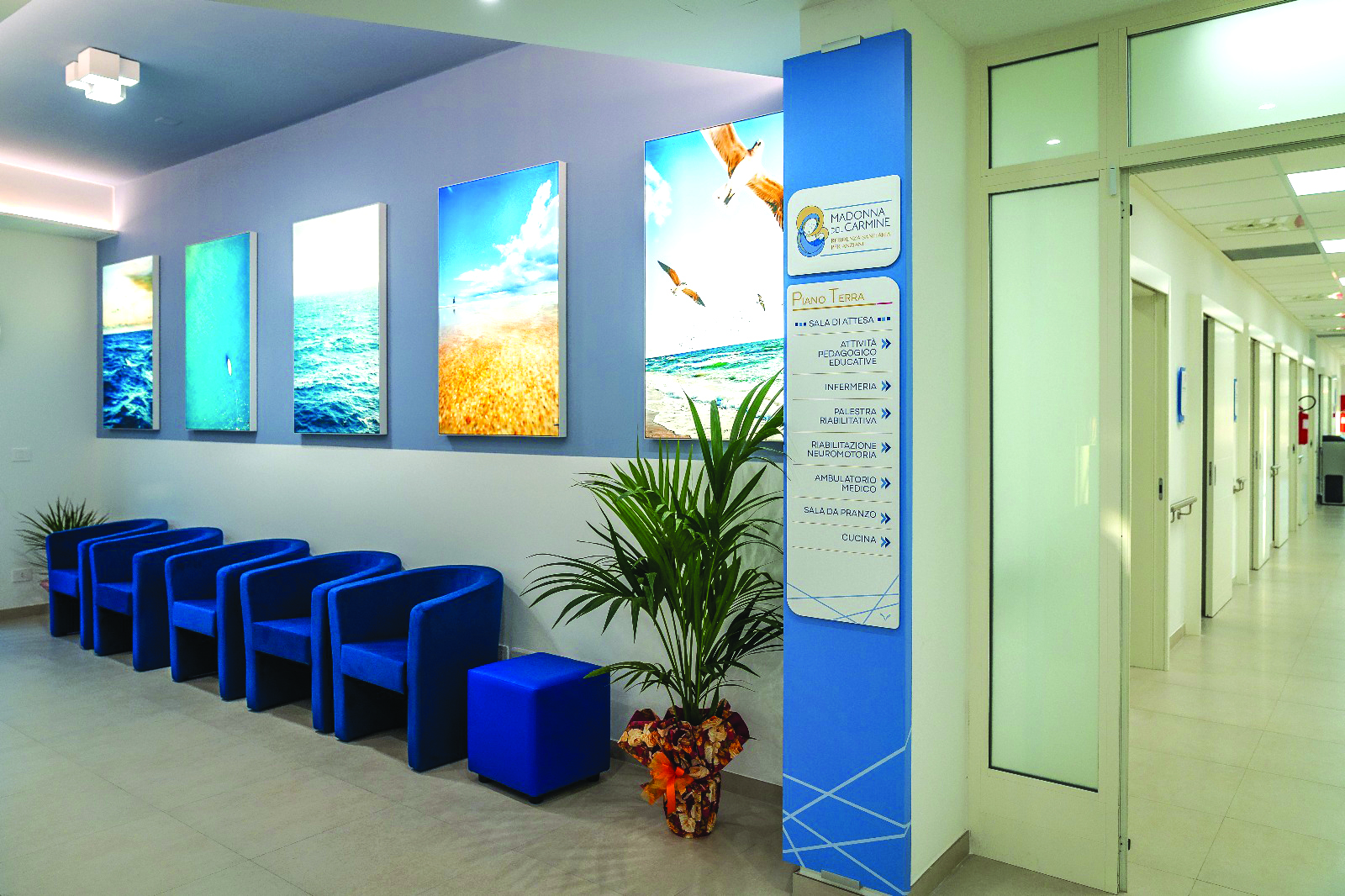 Troverete poi un’area multisensoriale: una palestra iperattrezzata, un luogo per la preghiera e uno per la cura continua dei nostri ospiti.