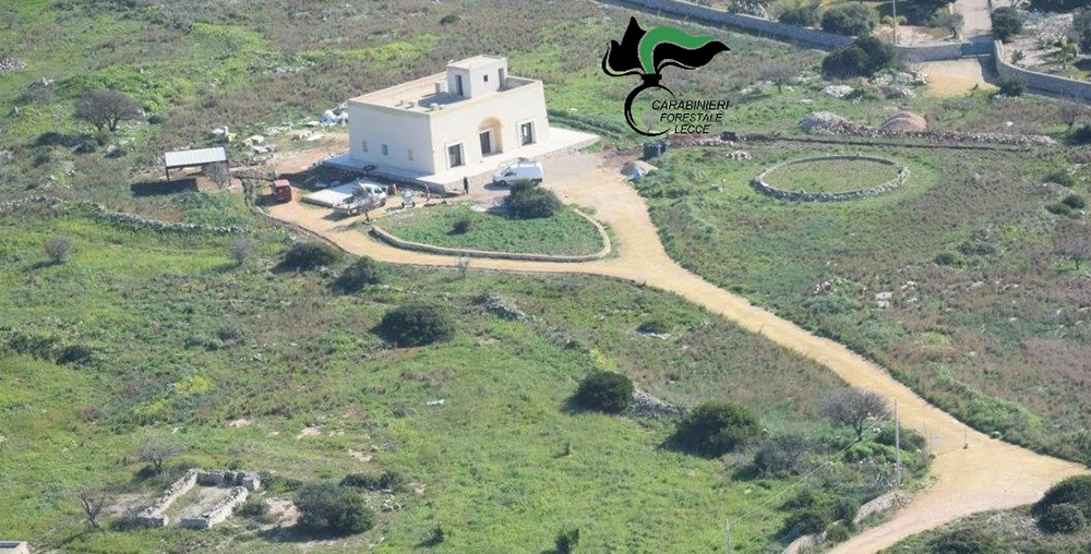 Controlli nel basso Salento dei carabinieri forestali: costruzione e strada abusive in zona a vincolo paesaggistico. Due denunce e sequestro del cantiere. Ricognizioni preventive effettuate con elicottero