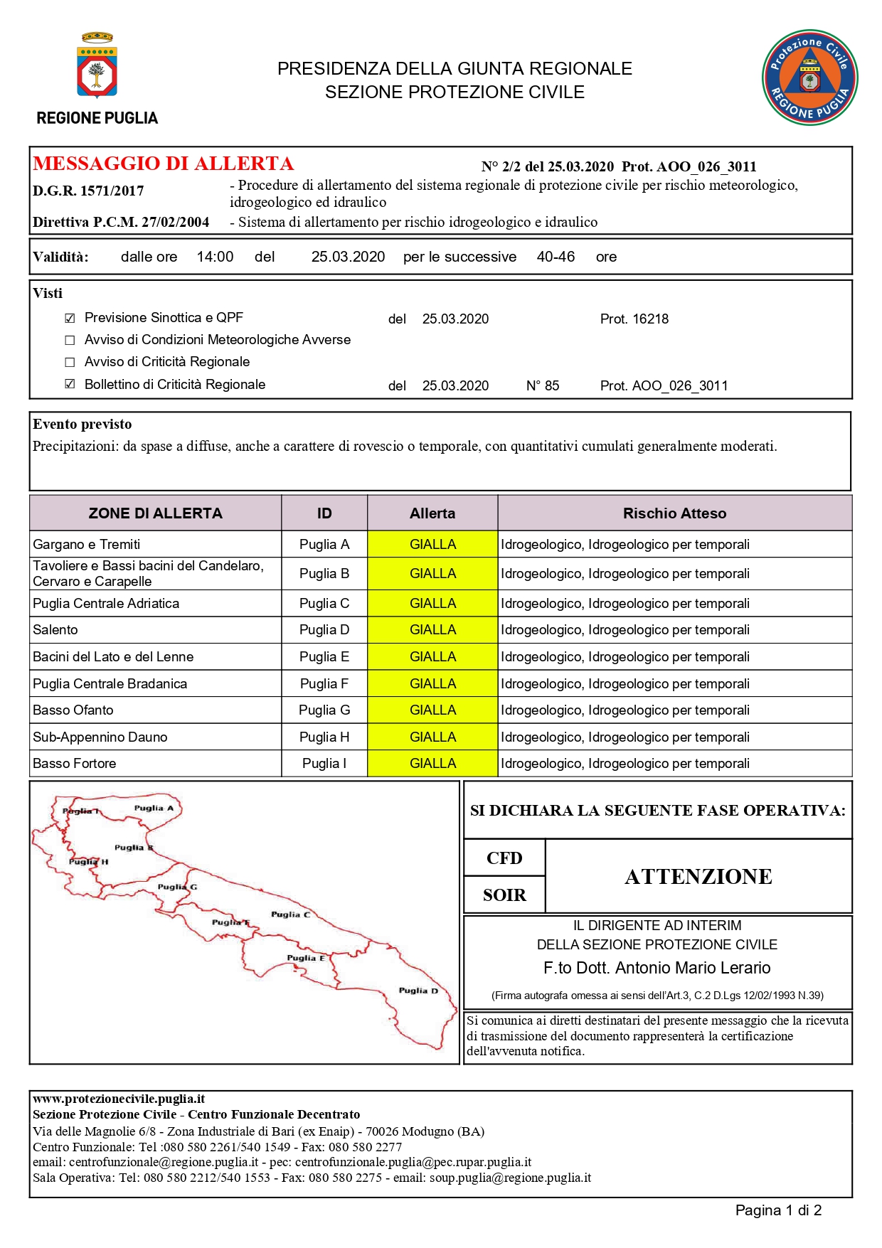 Allarme meteo su Puglia e Salento diramata dalla Protezione Civile Pugliese.