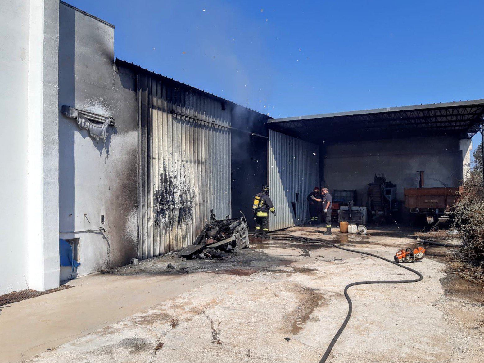 Delle sterpaglie hanno preso fuoco nel primo pomeriggio. Le fiamme si sono presto propagate andando ad intaccare un capannone.