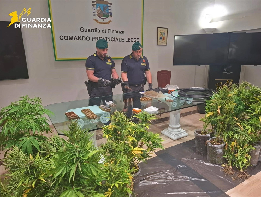 In tale contesto operativo, le unità specializzate dei Baschi Verdi del Gruppo di Lecce, con il supporto della Sezione Aerea del Reparto Operativo Aeronavale della Guardia di finanza di Bari, hanno individuato, nascosta tra la folta vegetazione nell’agro leccese a ridosso della statale 7 ter, una piantagione di marijuana composta da 93 piante alte fino ad 1,5 metri, per un peso totale di oltre 23 kg, nonché alcuni involucri contenenti complessivamente 190 grammi di marijuana e 53 grammi di cocaina.