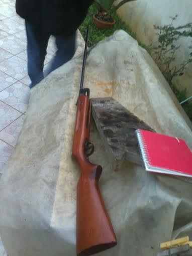 – un fucile carabina ad aria compressa, di fabbricazione cinese, modificato nei congegni di scatto con l’aggiunta di un sistema di percussione, camera di cartuccia e canna adattata ad ospitare cartucce cal. 8/4.40 caricate a pallini, privo di matricola;