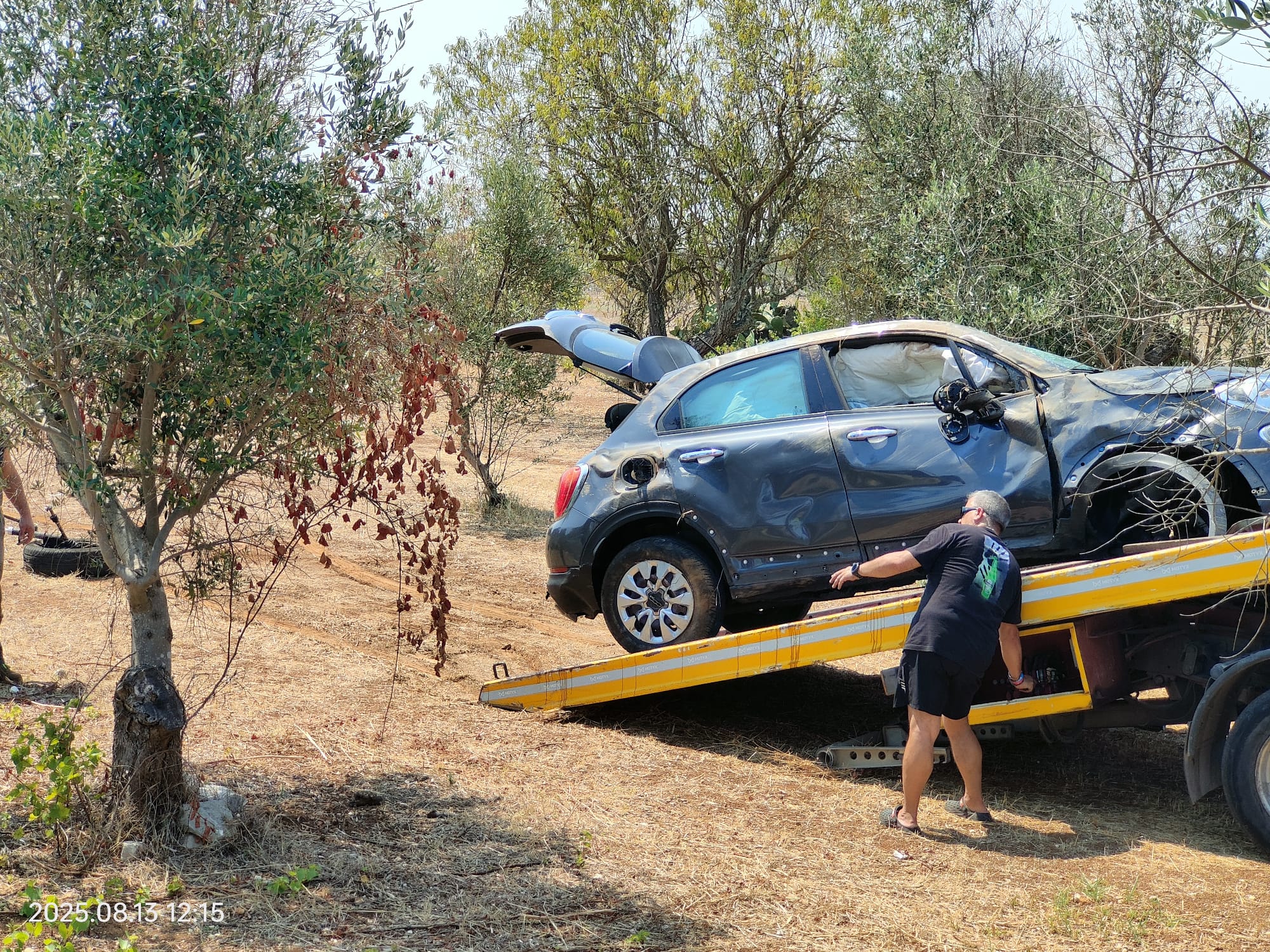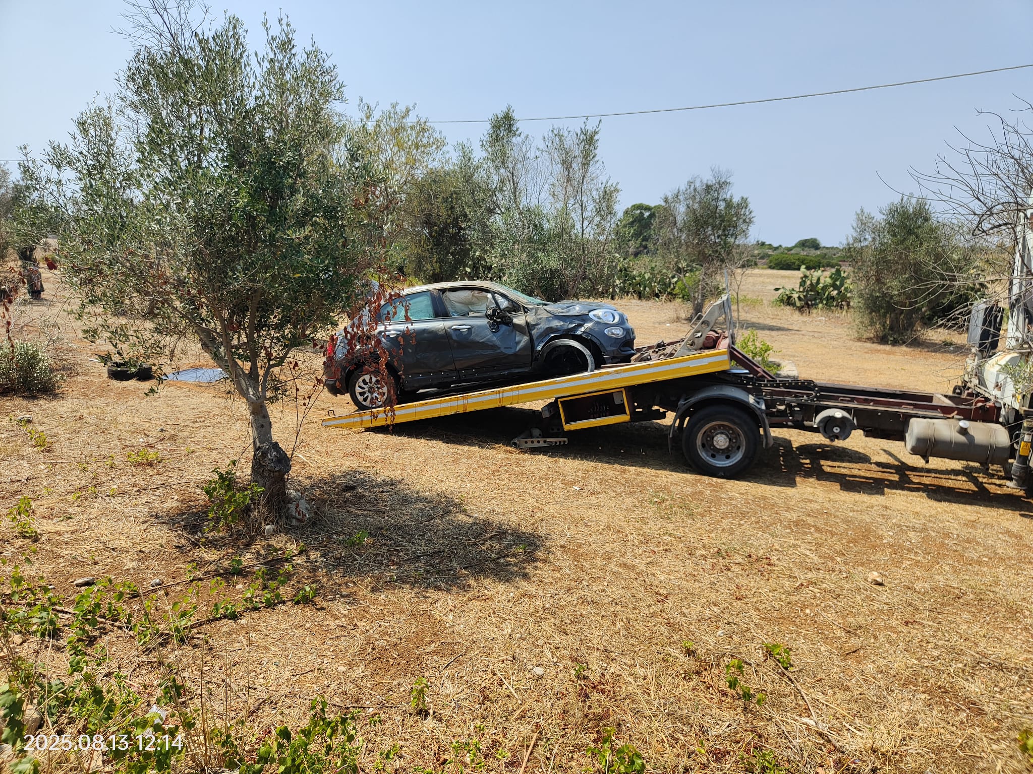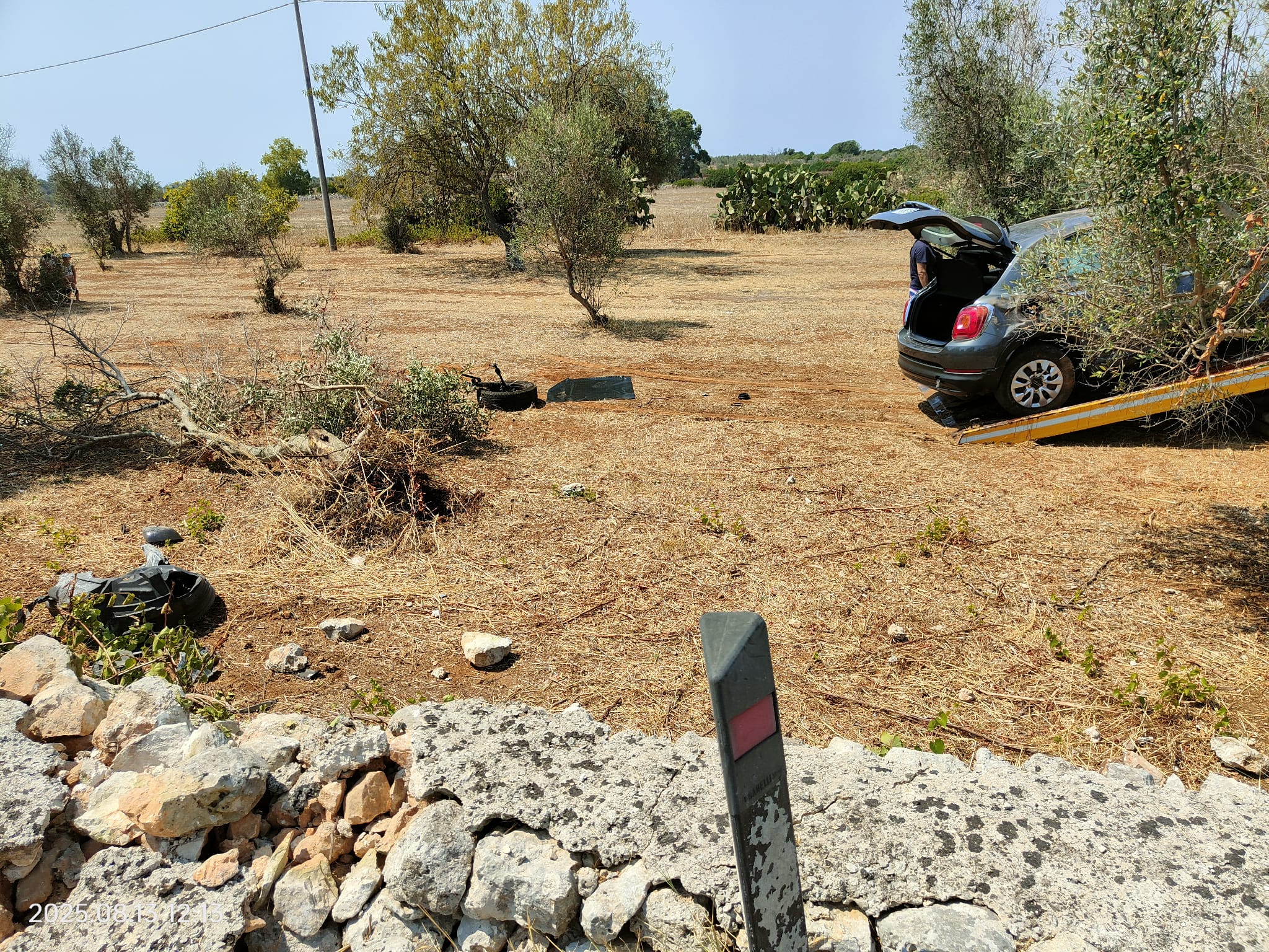 Incidente autonomo in mattinata, nei pressi del Camping Village. La vettura, finita tra gli ulivi, ha anche perso una ruota