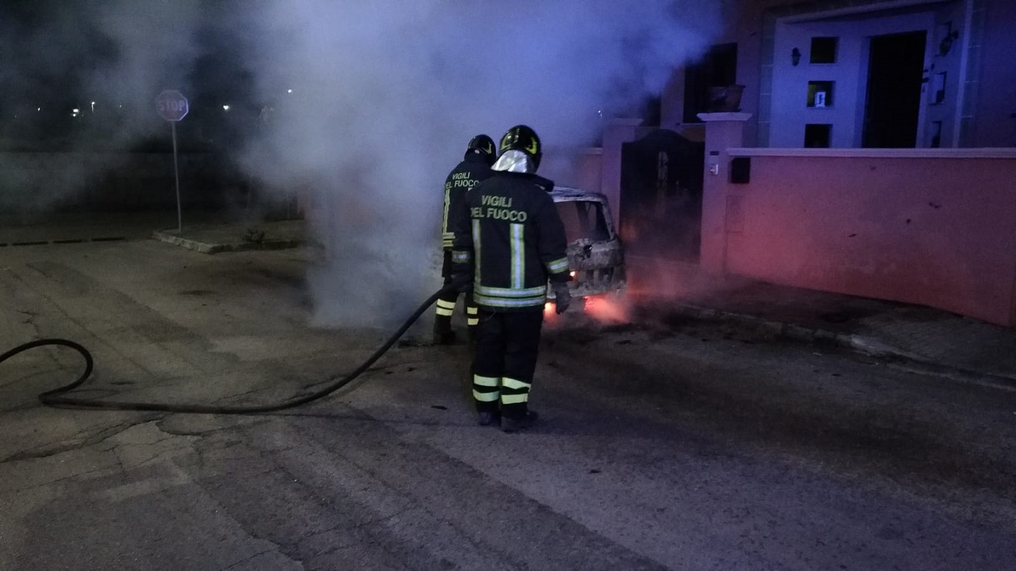Auto in fiamme sul finire della notte a Presicce.