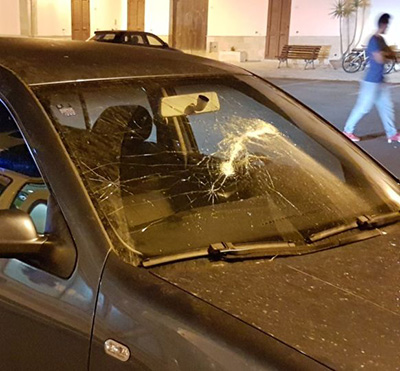 Sono stati rotti tutti i finestrini dell’auto e l’ammaccata in diversi punti della carrozzeria.