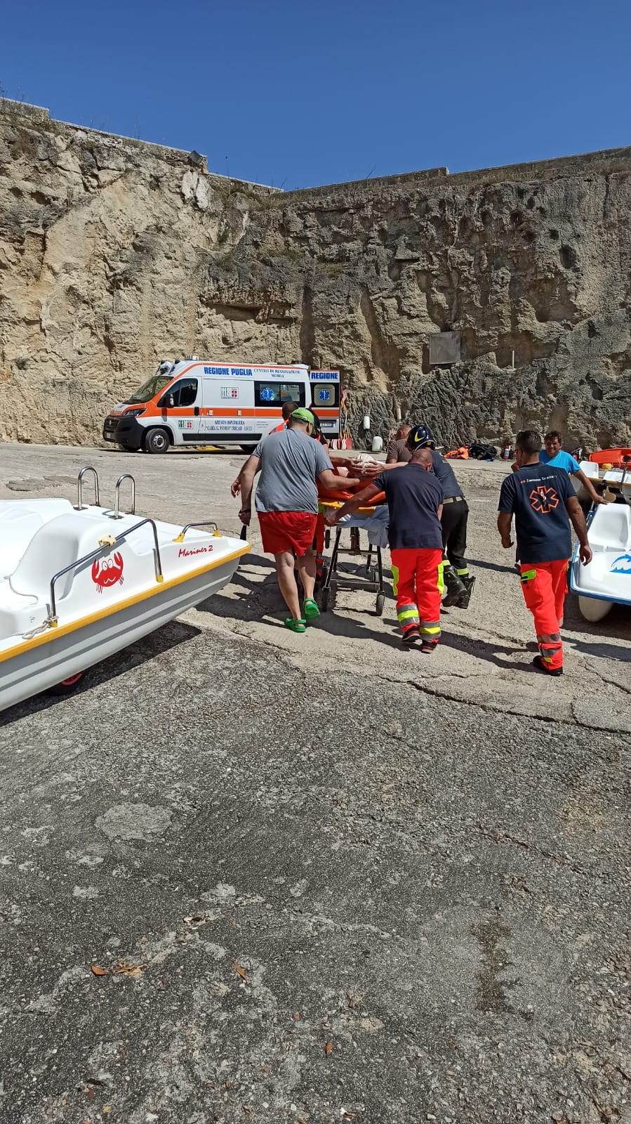 Gli operatori sanitari hanno immobilizzato il turista, poi ha trasportato presso la spiaggetta di Porto Miggiano dalla Guardia Costiera. Qui sono potuti intervenire i vigili del fuoco di Tricase che hanno seguito la risalita presso la sede stradale, dove lo attendeva l’ambulanza con cui è stato operato il viaggio in ospedale.