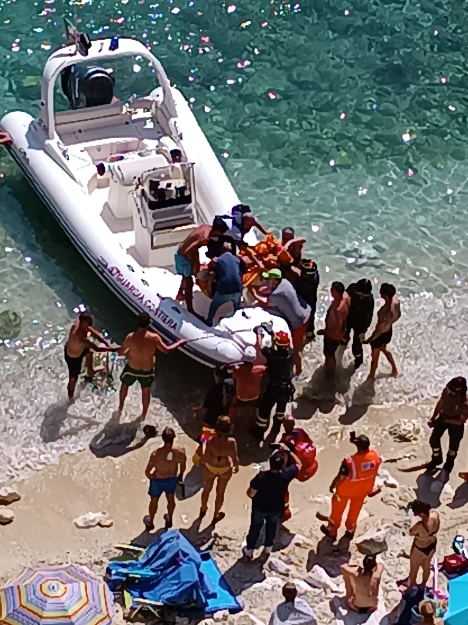 Soccorsi in riva al mare oggi a Santa Cesarea Terme per un uomo caduto sugli scogli (foto a fine articolo).