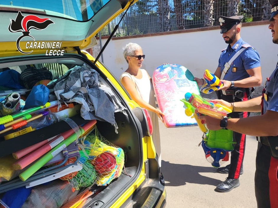 Sono stati i servizi sociali del Comune di Porto Cesareo, ad individuare una serie di associazioni, parrocchie e cooperative a cui devolvere gli articoli da mare, i gonfiabili e i giochi recuperati qualche giorno prima.
