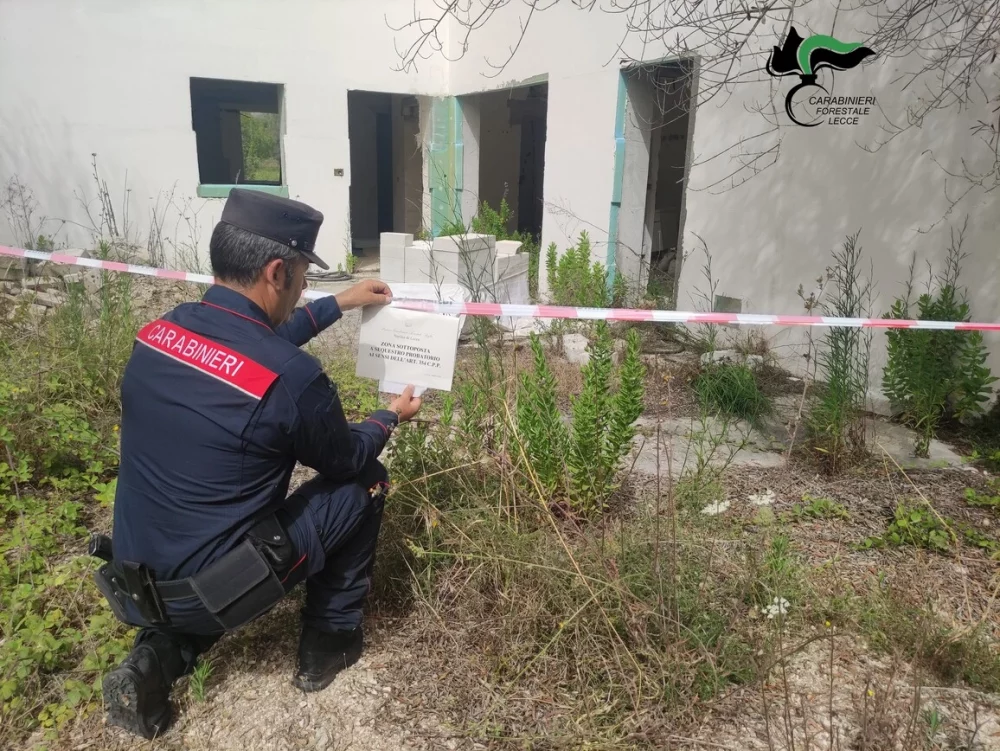 I carabinieri forestali di Otranto hanno individuato, nascoste fra la vegetazione, 5 strutture abitative in legno e muratura, complete di pavimentazione esterna, recinzione e impermeabilizzazione del terreno perimetrale per una superficie complessiva di quasi 1000 metri quadri.
