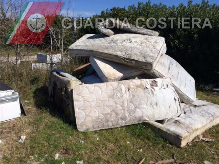 I militari della Guardia Costiera hanno scoperto che un terreno di circa 4.500 metri quadri ospitava rifiuti pericolosi: una vera e propria discarica abusiva con scarti edili (guaine di impermeabilizzazione, asfalti, inerti, residui cementizi e altro) e rifiuti ingombranti di natura domestica (materassi, frigoriferi, televisori, strutture in ferro), con molta probabilità abbandonati da diverso tempo in violazione delle norme poste a tutela dell’ambiente.