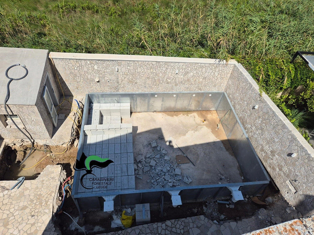 All’accertamento dall’alto è subito seguito quello a terra, con l’ausilio dei funzionari tecnici del Comune, da cui è emerso che i proprietari non erano in possesso di alcun titolo abilitativo per i lavori, ancora in corso, di realizzazione di una piscina.