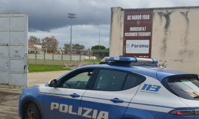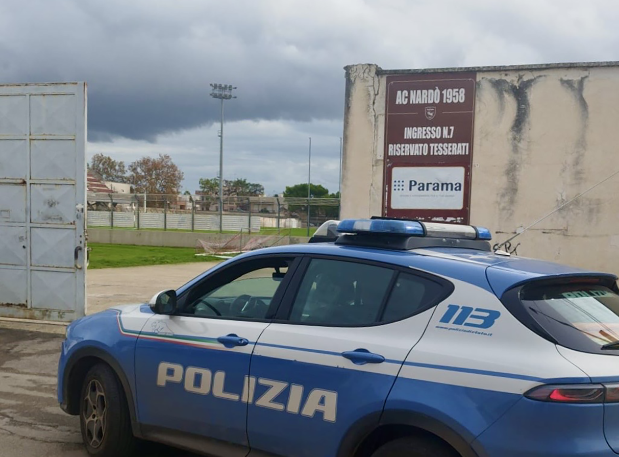 Controlli della Polizia di Stato allo stadio “Giovanni Paolo II” durante l’incontro di Serie D tra A.C. Nardò e Real Normanna. I due giovani, già destinatari di DASPO emesso dal Questore di Lecce, sono stati individuati nei pressi dell’impianto sportivo nonostante i divieti. Proposto l’aggravamento delle misure restrittive