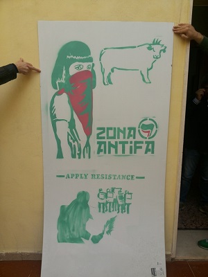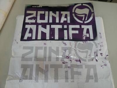 L’esito della perquisizione ha confermato quanto accertato, e permesso rinvenire nell’abitazione dei genitori della ragazza, con i quali convive: 24 bombolette spray di vari colori; simboli di Antifa e Apply Resistance; vari stencil con riproduzioni di immagini inneggianti alla resistenza e alla lotta.