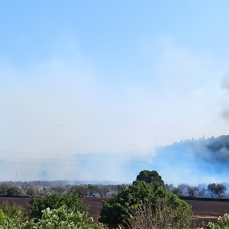 Le fiamme hanno coinvolto un’ampia zona, dicorando un boschetto e bruciando sterpaglie, ulivi e macchia mediterranea.
