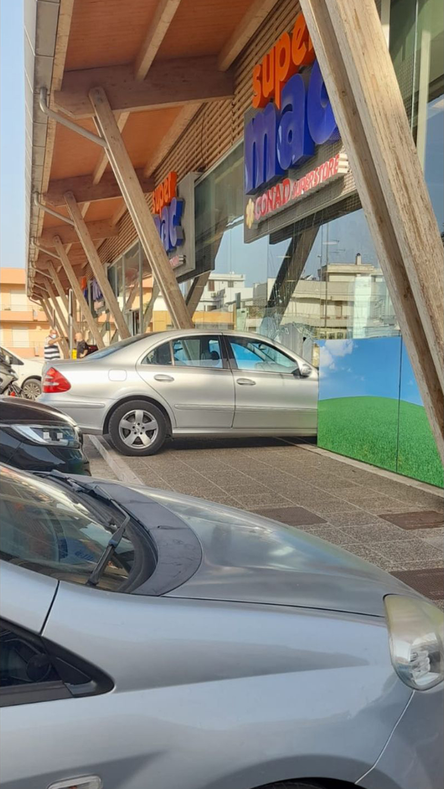 Nel pomeriggio una Mercedes ha sfondato le vetrine del Supermac, adagiandosi vicino a lavatrici ed elettrodomestici