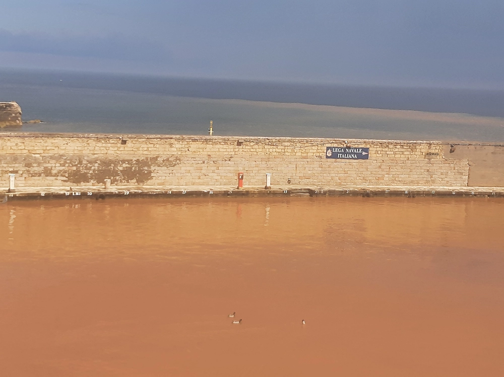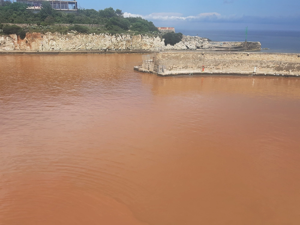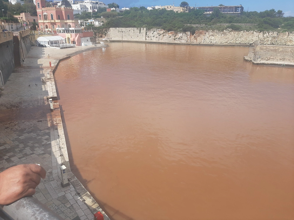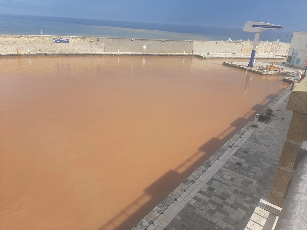 Nel frattempo diventavano virali sui social le immagini del mar rosso nel bacino d’acqua del porto di Tricase.