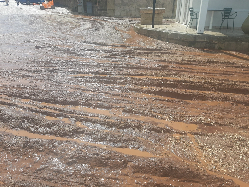 Colpa della terra scivolata giù (di nuovo!) da via Duca degli Abruzzi, interessata dai recenti lavori di riqualificazione. Il sindaco: «Riunione in mattinata con la ditta incarica dei lavori per risolvere definitivamente la questione»