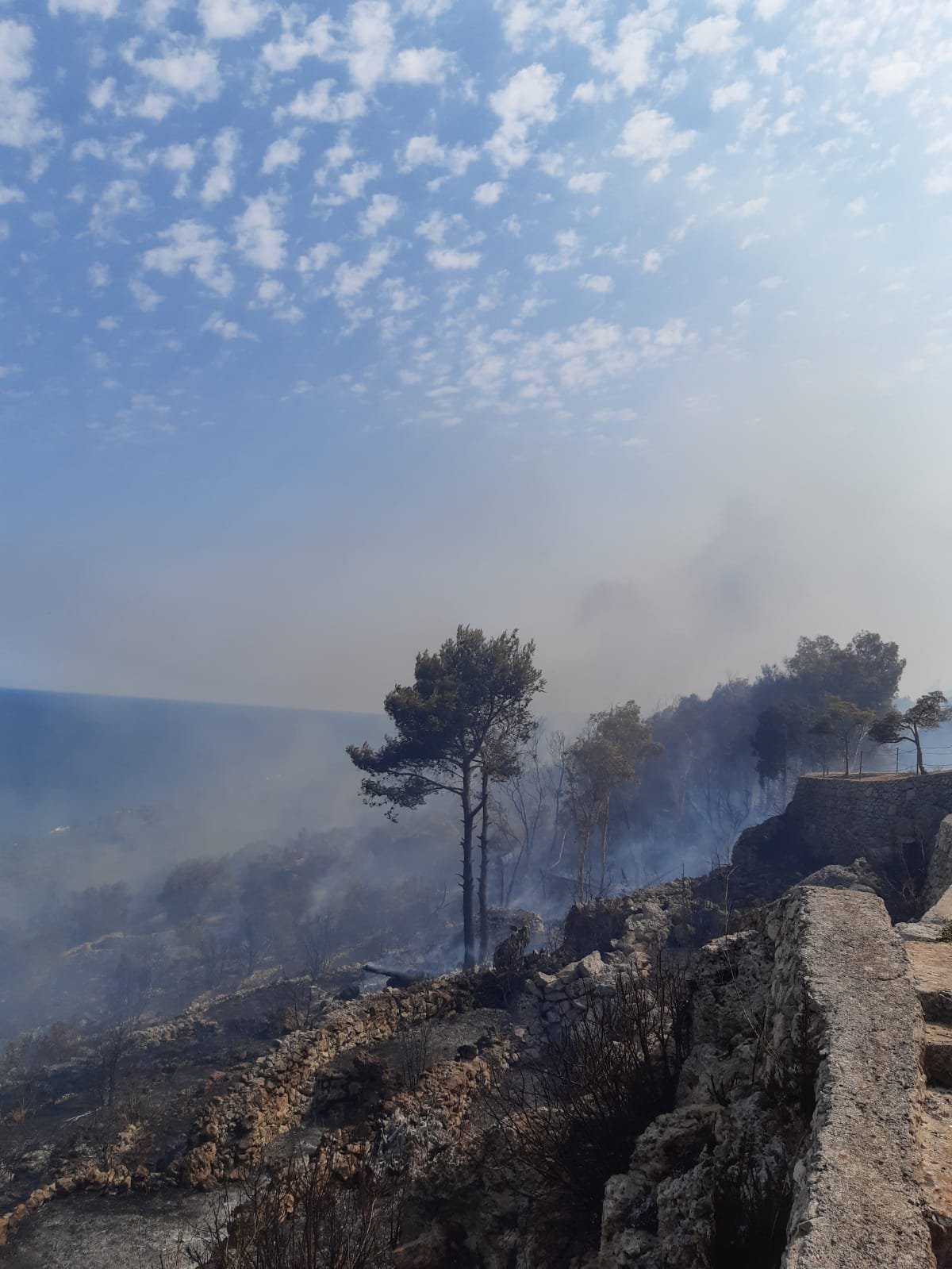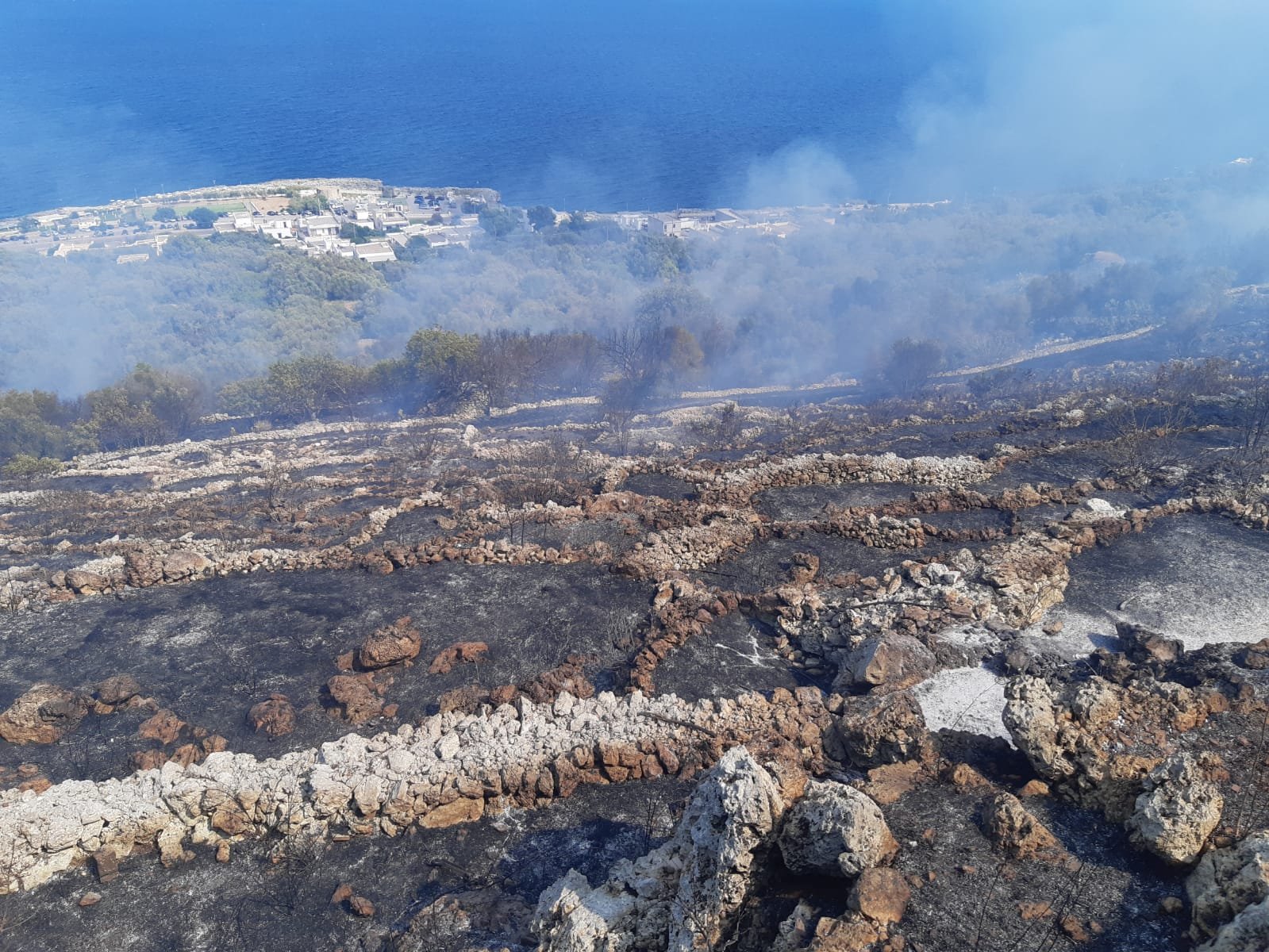 Caldo torrido ed ennesimo incendio con le fiamme che distruggono gli ulivi (quelli che restano) e la macchia mediterranea.La zona interessata è ancora una volta in pieno Parco Otranto – Bosco di Tricase – Santa Maria di Leuca.Siamo sulla litoranea tra Tricase Porto e marina di Andrano, nei pressi della Torre del Sasso.La stessa zona già altre due volte da inizio estate è stata interessata da vasti incendi.