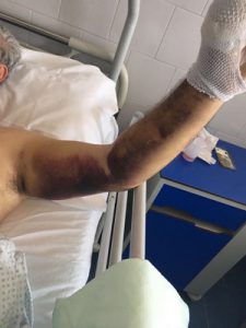 “Questa razza”, continua, “é altamente pericolosa, soprattutto per bambini ed adolescenti: il morso ad una persona con massa corporea intorno o sotto ai 50 chilogrammi può essere letale. Allo stesso modo la situazione può diventare irreversibile se il morso è su un polpaccio o su un braccio, laddove il veleno entra più facilmente in circolo. Sono stato fortunato per vari fattori: la massa corporea, la localizzazione delle ferite, il dosaggio lento del vaccino. Nonostante tutto ho rischiato la cancrena: fino all’ultimo momento ho temuto l’amputazione delle braccia. Con l’aiuto dell’antidoto sono sfuggito al pericolo anche se continuavo a pensare a come avrei vissuto i miei giorni senza pollice destro ed indice sinistro. Fortunatamente non è andata così”, aggiunge muovendo e guardandosi, con rinfrancante sollievo, le dita ancora attaccate alle mani.