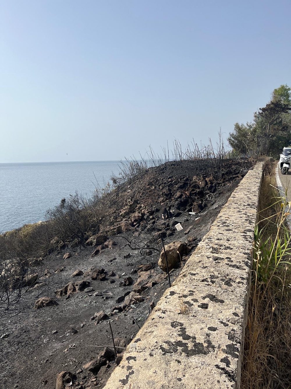 L’incendio è divampato sul lato mare della strada ma, ancora qualche minuto ed una decina di metri più a sud, e la pericolosa vicinanza tra la vegetazione tra un versante e l’altro della via, avrebbe potuto dare avvio ad una notte ancora più incandescente e pericolosa: con quel vento e quella temperatura, nessuno dei residenti in tutta quella fascia costiera sarebbe stato al sicuro.