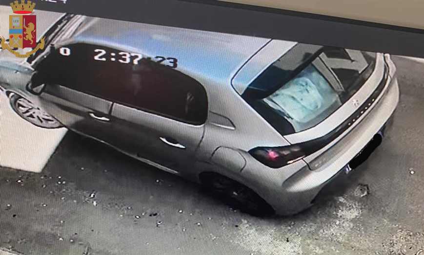 Qui, gli occupanti dell’auto, una Peugeot 208 di colore grigio, risultata noleggiata a Roma, accortisi di essere seguiti, si sono disfatti di un sacchetto di stoffa (si è accertato essere la federa di un cuscino), lanciandolo tra i cespugli(e successivamente recuperato dai poliziotti del Commissariato), dirigendosi poi, a forte velocità, verso nord.