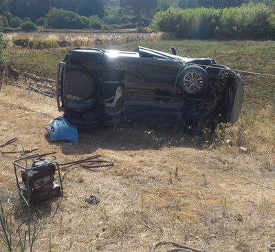 Una Fiat Punto, per cause ancora da accertare, è finita fuori dalla sede stradale ribaltandosi nella campagna circostante.