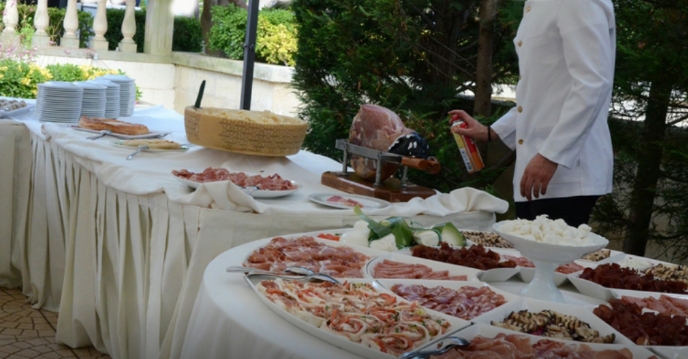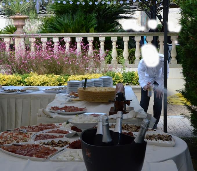 Un sontuoso buffet, uno dei tanti che si svolgono all’aperto durante la bella stagione e sino a quando il tempo lo permette, e qualche mosca o vespa che ronza sulle pietanze messe in bella vista.
