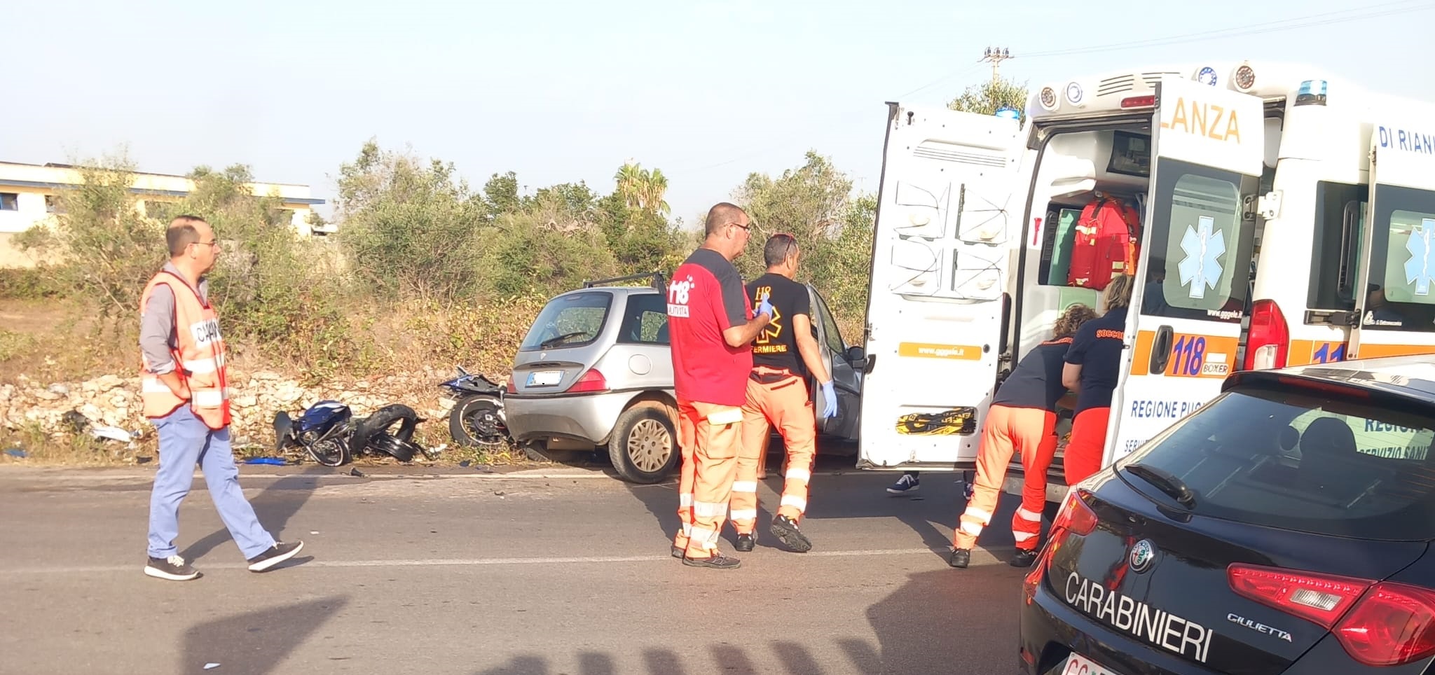 Sul luogo del sinistro anche i carabinieri della Compagnia di Tricase. Secondo una prima ricostruzione, la moto procedeva in direzione nord, verso Montesano, mentre l’auto si era appena immessa sulla statale.
