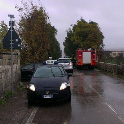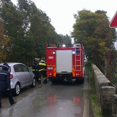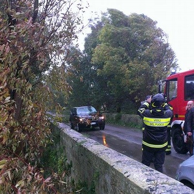 Poco dopo mezzogiorno, sotto una bufera di pioggia e vento, una Bmw X3 nera è stata colpita da un albero caduto sulla carreggiata ad una cinquantina di metri dall’ingresso nella frazione di Tricase, sulla SP 81.