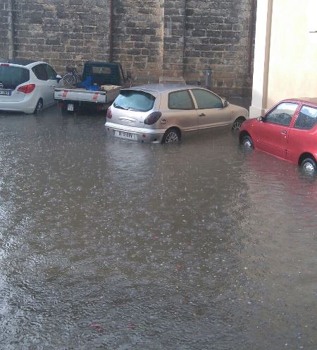 Particolarmente colpita la zona di Botrugno, dove alcune strade sono rimaste allagate a causa di un violento acquazzone. Come visibile in foto, una bomba d’acqua ha reso irraggiungibili le auto in sosta.