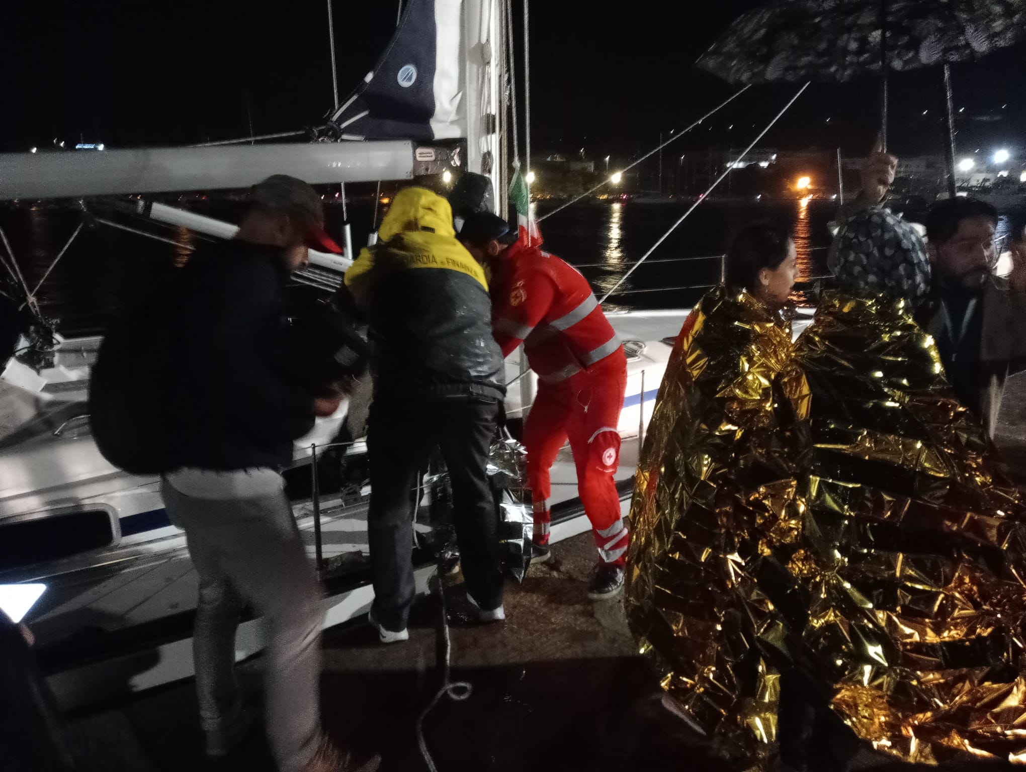 L’avvistamento di una barca a vela, da parte di una motovedetta del Reparto operativo navale della Guardia di Finanza, è avvenuto sotto una fitta pioggia poco dopo la mezzanotte.