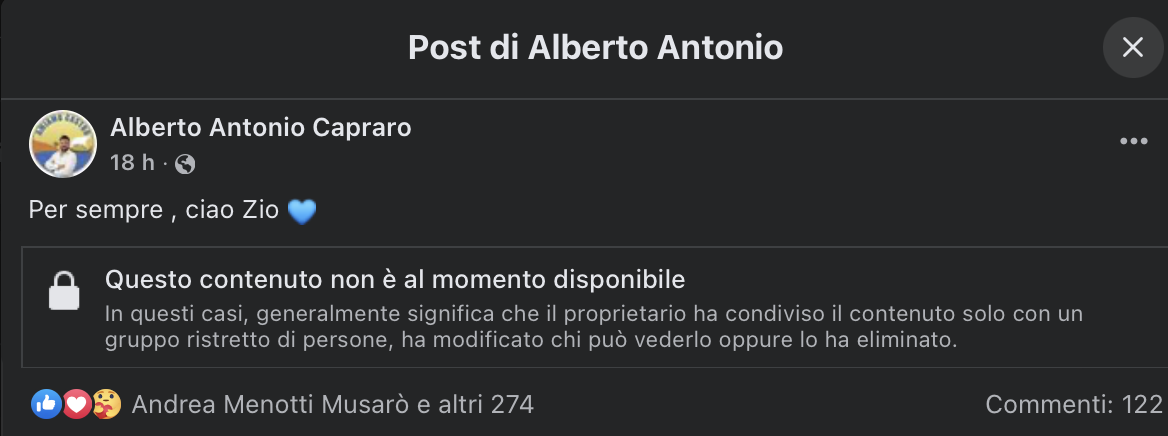 Così ricorda lo ricorda il nipote, Alberto Capraro, nonché vicesindaco di Castro, in un post su fb: “Per sempre, ciao zio”.