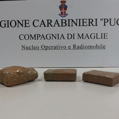 I carabinieri dell’Aliquota Operativa della Compagnia di Maglie, nella giornata di ieri, hanno rinvenuto tre panetti di eroina occultati in un cespuglio in una campagna della località “Luca Giovanni”.