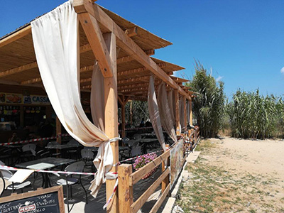 Al termine dell’attività vertente sulla verifica di eventuali violazioni alle prescrizioni impartite dagli organi competenti in materia di edilizia, paesaggio e demanio marittimo, regolarità dei sistemi e procedure per lo smaltimento dei rifiuti e degli scarichi, è stata sottoposta a sequestro preventivo d’urgenza un’area di circa 100 mq con struttura in legno costituita da travi, pilastri e copertura con incannucciato, adibita a zona ombreggiante di somministrazione di alimenti e bevande, realizzata in assenza di titolo edilizio e paesaggistico, in ampliamento a quella già autorizzata e che, comunque, non preclude il regolare funzionamento dell’attività.