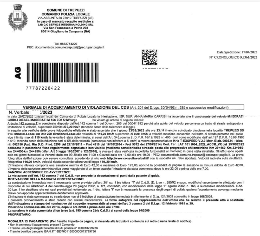 Dunque, come conferma il verbale pubblicato a fine articolo, la tagliola è scattata per appena 2 decimi di chilometro all’ora in più.