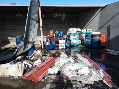 L’opificio, in stato di completo abbandono ed oggetto di furti ed atti di vandalismo, risulta interessato dai rifiuti industriali derivanti dalla passata attività ed in particolare da decine di fusti metallici di varia capacità’ contenenti rifiuti liquidi pericolosi
