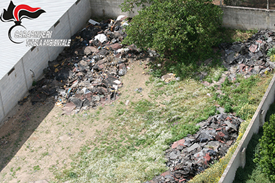 Torre Rinalda: ritrovati circa circa 500 mc di rifiuti speciali: guaine catramose, scarti delle operazioni di bonifica dei veicoli, rifiuti in legno, una carcassa di autovettura, rifiuti in vetro…