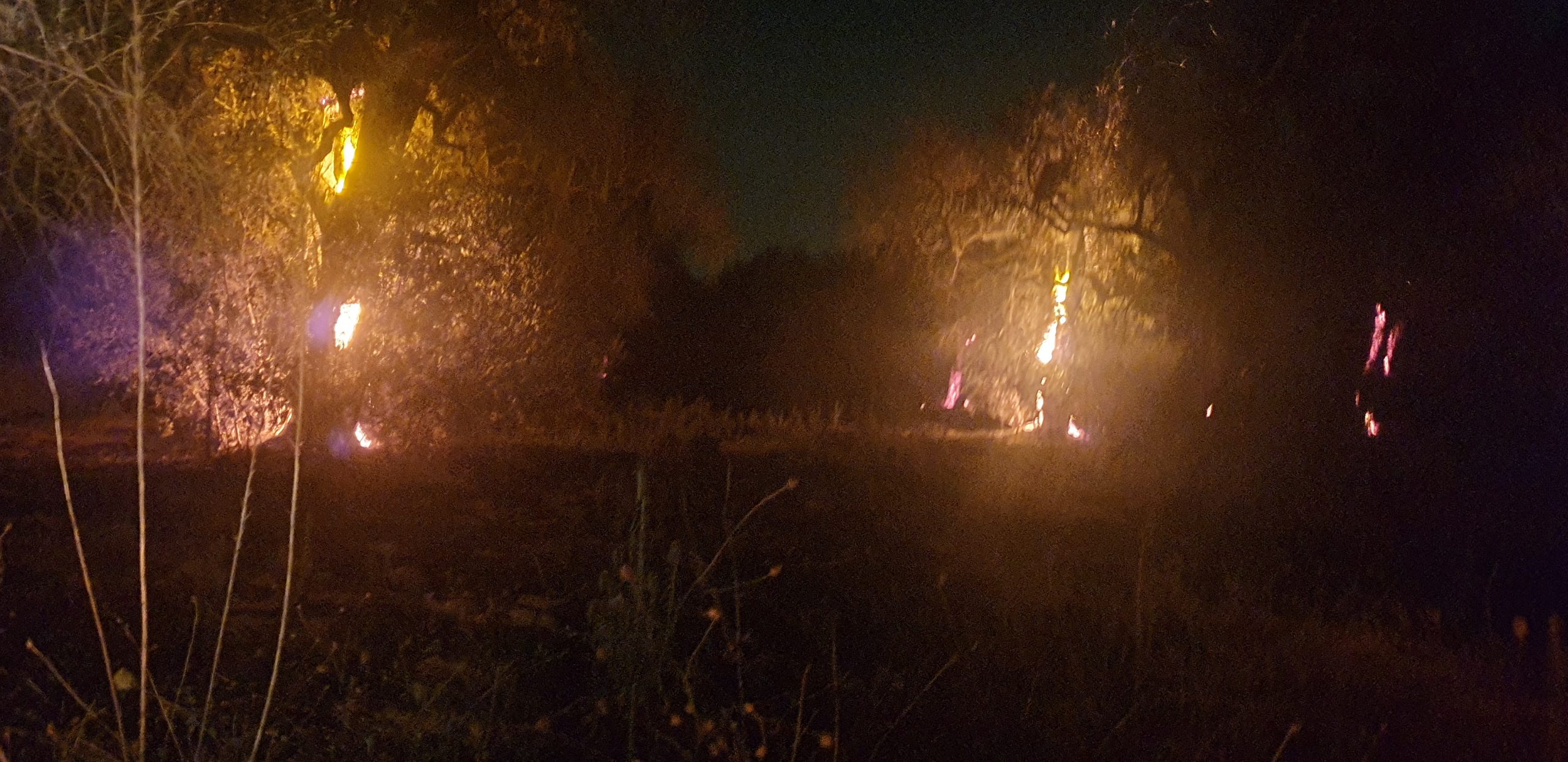 Un incendio è divampato nella notte all’interno di un terreno di proprietà sulla sp 179, in direzione di Ruffano